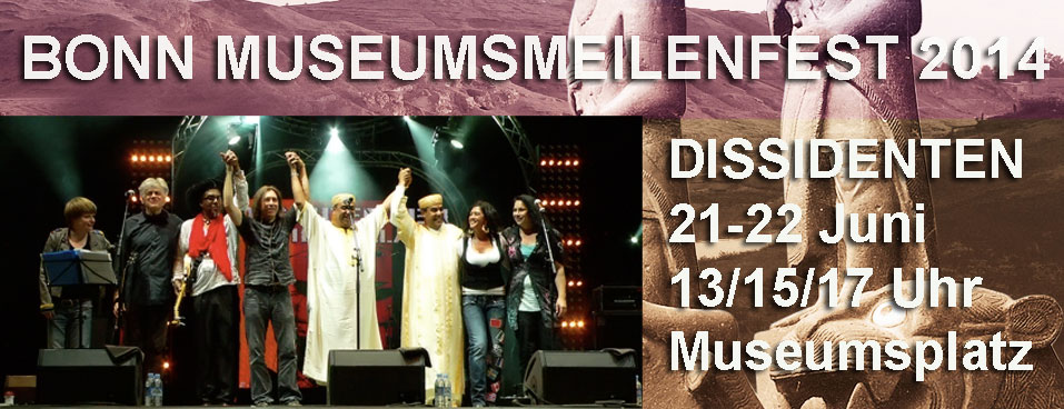 moreDissidenten Live Unplugged on the 20. Museumsmeilenfest Museumsplatz Bonn – June 21/22,2014 Line-up Uve Müllrich – BassElke Rogge – Hurdy GurdyNoujoum Ouazza –