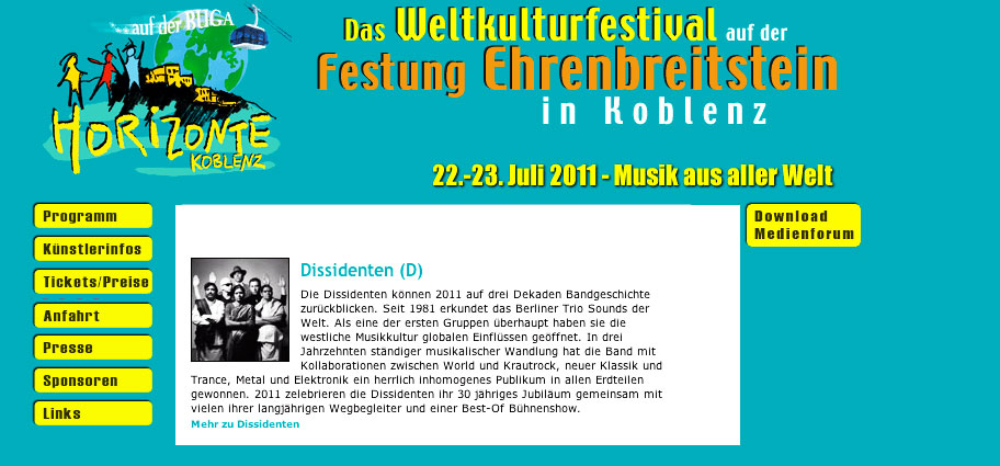 moreDissidenten live @ Horizonte Weltkulturfestival Koblenz / Germany – July 23, 2011