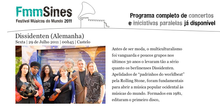 moreDissidenten live @ Sines – Festival Musicas do Mundo -Sines 2011 / Portugal – July 29, 2011